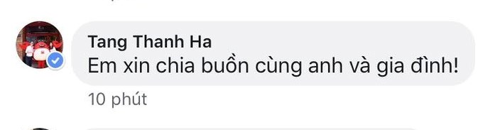 | Tăng Thanh Hà gửi lời chia buồn tới Quang Dũng và gia đình |