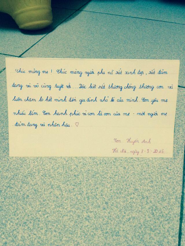 ![]() Lời chúc nắn nót của cô con gái Huyền Anh gửi đến mẹ. |