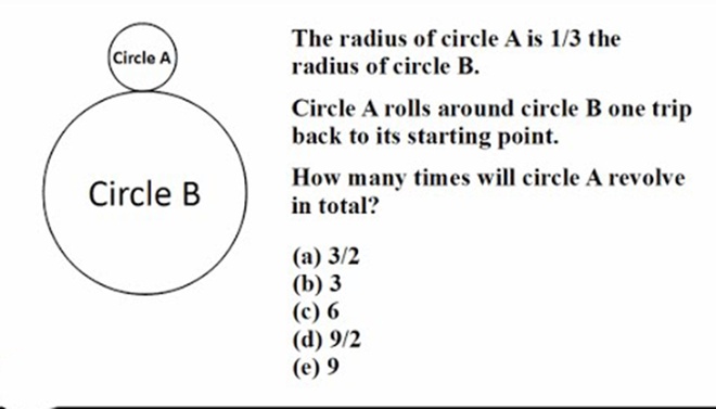Tác giả bài viết cho rằng câu hỏi nhắc đến "revolve" nghĩa là hình tròn A vừa tự xoay quanh nó vì xoay quanh hình tròn B. Vì vậy, đáp án thực sự của bài toán là 4 vòng (không trùng với những phương án đề đưa ra).