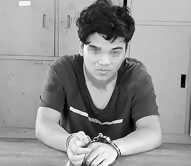 Nghi phạm Khơi tại cơ quan công an. Ảnh: Dân Việt |