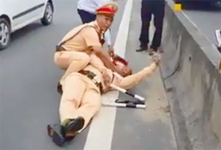 Tại đây, tổ tuần tra đã thông báo cho lái xe là xe vi phạm quy định về tốc độ thì lái xe cãi lại. Tổ tuần tra giải thích vi phạm của xe và yêu cầu lái xe xuất trình các giấy tờ liên quan để kiểm tra thì lái xe không chấp hành và nhảy lên đóng cửa xe lại.