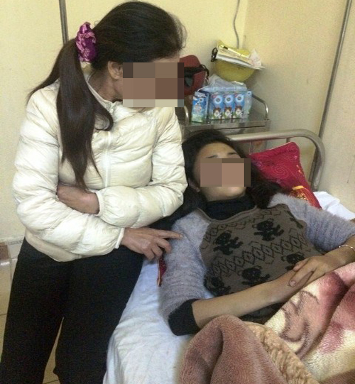 Nhận được điện thoại, vợ chồng ông L. vội vã đến đón T. và đưa con gái vào viện. Trần Thị T. nhập viện trong tình trạng bị choáng ở vùng đầu, mặt, tay, đầu sưng nề, thâm tím nhiều chỗ. Sau hai ngày nằm điều trị tại bệnh viện tỉnh, sáng 25/12, gia đình đã chuyển T. ra Hà Nội để thăm khám và điều trị.