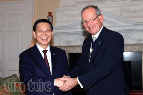 Chủ tịch UBND TP Hà Nội Nguyễn Thế Thảo và Ngài Alderman Yarrow, Thị trưởng Trung tâm Tài chính London |