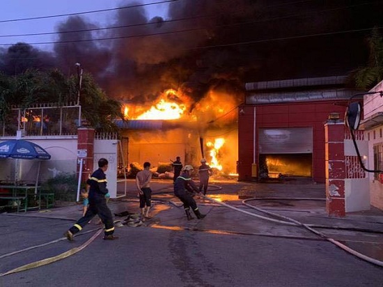 Tuy nhiên, do doanh nghiệp này sản xuất vật liệu dễ cháy và gió mạnh nên đám cháy bùng phát ra toàn khu nhà xưởng cùng văn phòng.