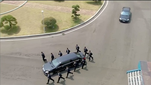 Video 12 vệ sĩ bảo vệ xe chở ông Kim Jong-un: