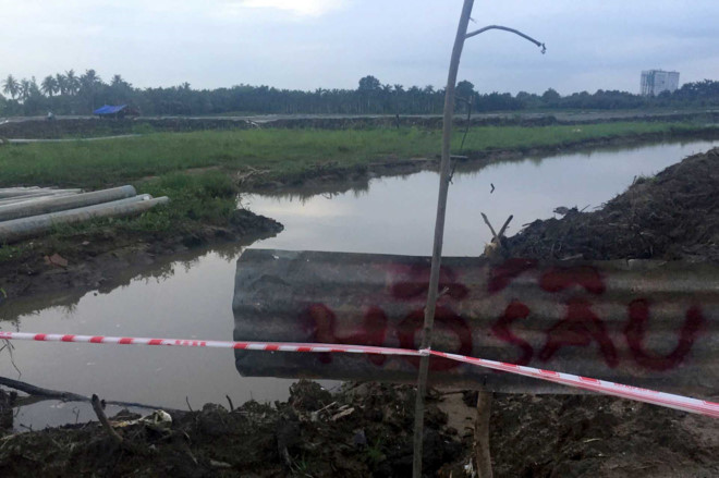Hố nước nơi bé N. tử vong - Ảnh: báo Tri thức trực tuyến |