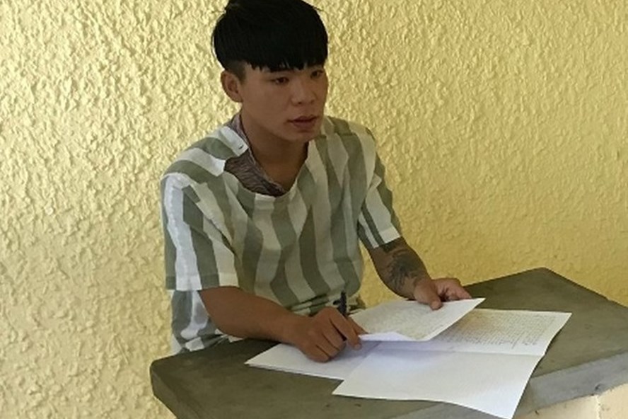 | Phan Chí Trung tại cơ quan công an (ảnh: Lao động) |