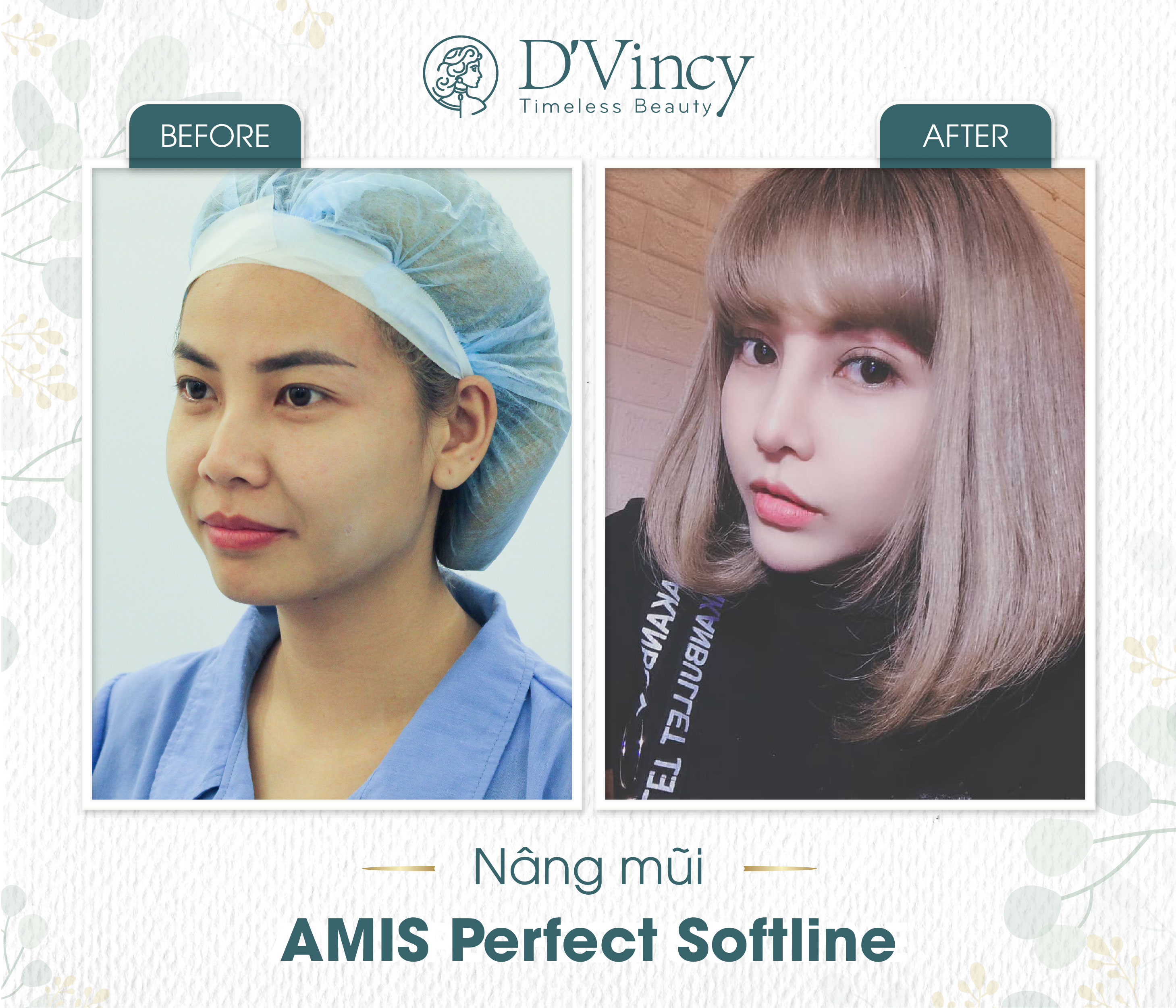 | Khách hàng trước và sau trải nghiệm dịch vụ nâng mũi Amis Perfect Softline tại Viện thẩm mỹ D’Vincy |