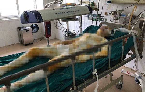 Do tình trạng quá nặng, chị H. được chuyển xuống Viện Bỏng quốc gia, mức độ bỏng toàn thân là 92%, cơ hội sống mong manh.
