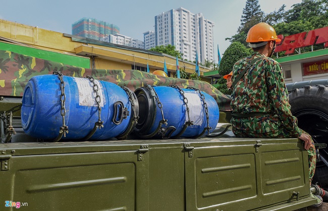 Hóa chất được lực lượng quân đội mang vào nhà máy Rạng Đông có tên là Effective Chloramine. Đây là một trong những hóa chất có tác dụng khử trùng. Ảnh: Zing.vn |