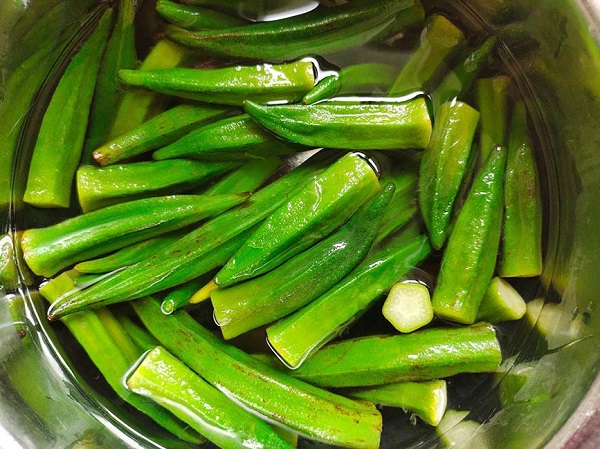 - Đậu bắp rửa sạch, để ráo nước.