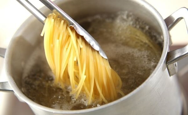 - Đun sôi một nồi nước với chút muối sau đó cho mì vào luộc khoảng 9-10 phút là mì chín. Mì chín vớt ra rồi trộn với chút dầu oliu cho tơi.