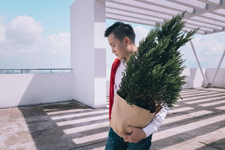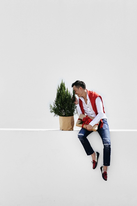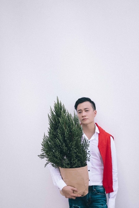 Trong bộ ảnh mới được tung ra nhân dịp giáng sinh, Lương Mạnh Hải ăn vận rất đơn giản với quần jeans-áo sơ mi. Anh khéo léo điểm xuyết thêm với cách khoác áo phá cách bằng chiếc áo khoác tông đỏ, phù hợp với không khí và màu sắc của mùa giáng sinh.