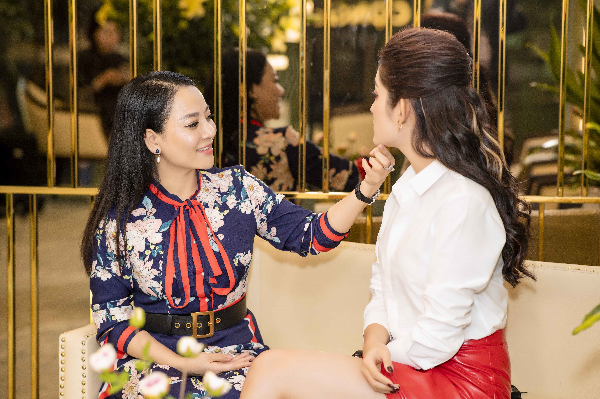 Bà Lưu Bích Nguyệt đang thăm khám, tư vấn tình trạng lão hóa da cho Á hậu Huyền My. |