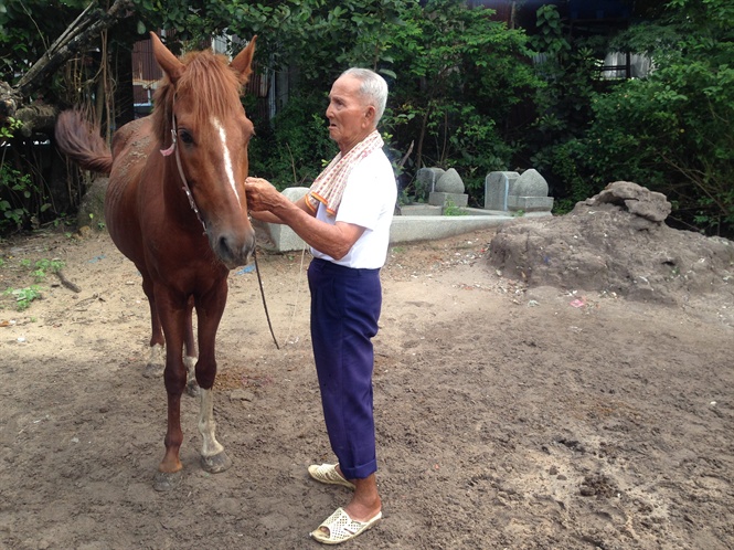 Ông là Nguyễn Văn Tường, 85 tuổi, do quê ông ở Gò Công, Tiền Giang nên mọi người thường gọi ông là Năm Gò Công. Hiện cả gia đình ông đang tá túc trong căn nhà dột nát trong nghĩa trang Bình Hưng Hoà, quận Bình Tân, TP.HCM. Còn đàn ngựa hơn chục con cũng có một dãy chuồng rách nát nằm xen giữa những ngôi mộ.