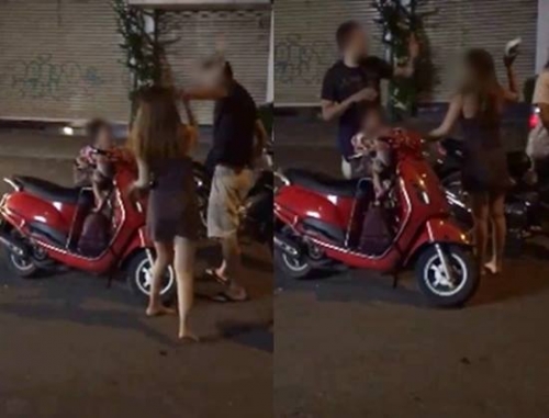Điều đáng chú ý là trên xe máy lúc này còn chở theo một bé gái, thấy cảnh tượng trên em bé không ngừng gào khóc.