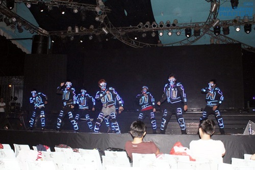 Ca sĩ Thanh Thảo và Lý Hải tập chương trình cùng vũ đoàn.