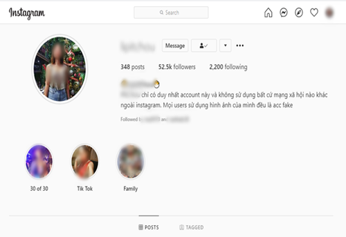 Tài khoản Instagram của người phụ nữ ăn mặc phản cảm. |