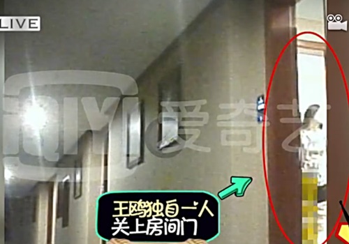 Hình ảnh cắt ra từ clip cho thấy Lưu Khải Uy vào phòng Vương Âu vào buổi tối. |