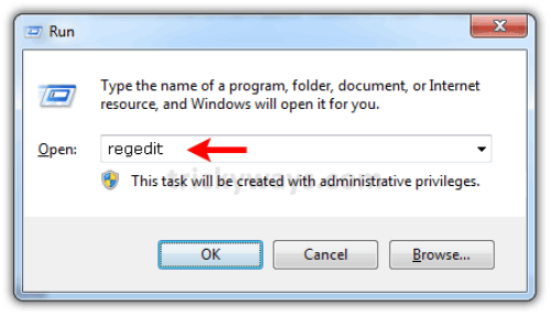 Bước 1: Vào Start, chọn run, gõ regedit vào ô từ khóa