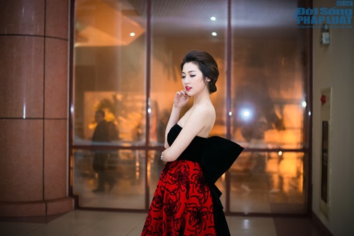 Á hậu Thụy Vân xuất hiện với vai trò MC cho cuộc thi chung kết Người đẹp Kinh Bắc diễn ra vào tối qua (13/3).