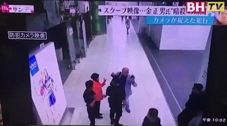 Ngay khoảng khắc đó, hai người phụ nữ từ hai phía khác nhau đã xông vào từ phía sau người đàn ông được cho là ông Kim Jong-nam này. Một người phụ nữ với mái tóc ngang vai đã dùng cánh tay để kẹp lấy đầu, sau đó là mặt của người đàn ông. Chỉ vài giây ngay sau đó, hai người này đã rời hiện trường một cách bình thản.