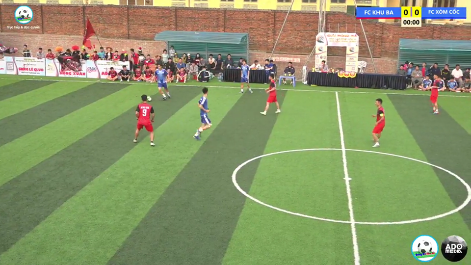Loạt trận đầu tiên của bảng B trận đấu rất đáng chú ý, đây là màn đối đầu thú vị giữa người hàng xóm ồn ào FC Khu Ba gặp FC Xóm Cốc. Hai đội bóng đến từ Thạch Thất đã “nhuốm đỏ” sân bóng ADO GROUP với sự xuất hiện của rất đông khán giả cùng với cờ và trống.