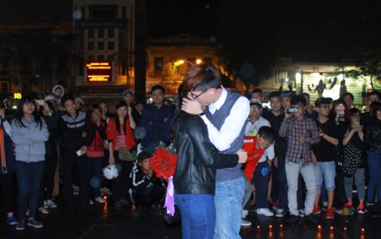 (ĐSPL) - Tối 14/3, một chàng trai Hải Phòng gây chú ý với màn tỏ tình không thể lãng mạn hơn tại khu vực nhà hát lớn - trung tâm thành phố.