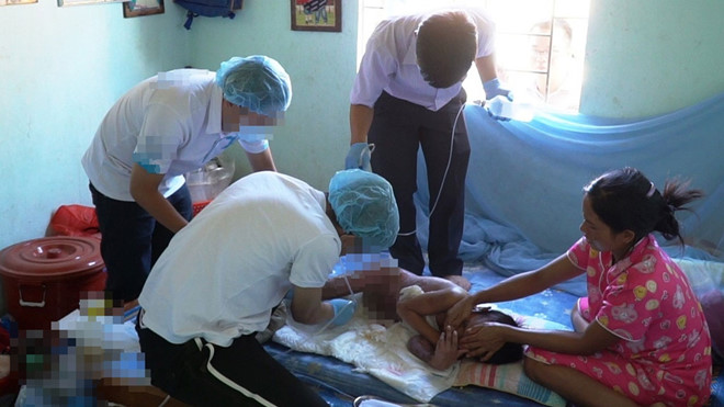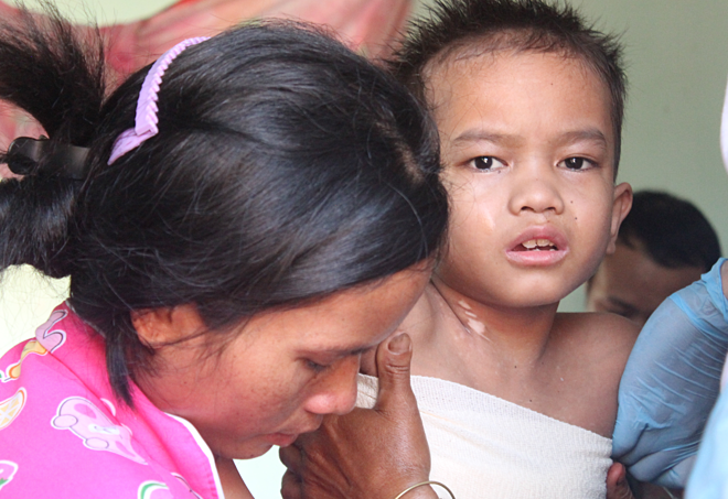 Các bác sĩ tại TP.HCM lặn lội lên Kon Tum điều trị cho A Huyên. Ảnh: Thanh niên |
