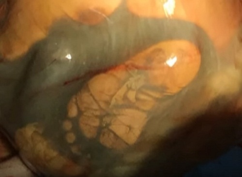 Theo đó, thai nhi vẫn nằm trong túi ối bảo vệ như những em bé nằm trong tử cung khác, chỉ có túi ối là không nằm trong dạ con. Các sĩ cho hay, nếu gặp trường hợp này, tỷ lệ em bé sống sót là rất thấp.