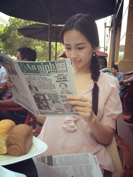 | Thời gian gần đây, làn da của người đẹp họ Mai ngày càng mịn màng, trắng sáng. Nó giúp gương mặt không son phấn của cô xinh đẹp, cuốn hút hơn hẳn. |