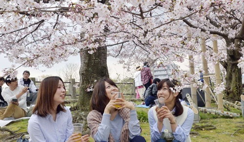 Đây là thời gian đẹp nhất trong năm ở Nhật Bản. Các bản tin cập nhật thường xuyên những địa điểm có hoa anh đào đang nở rộ, các desktop màn hình, vỏ bọc điện thoại đều có màu hồng phấn. Thậm chí ngay cả giấy gói thực phẩm cũng có in những bông hoa anh đào tươi tắn.