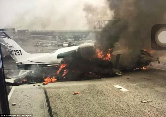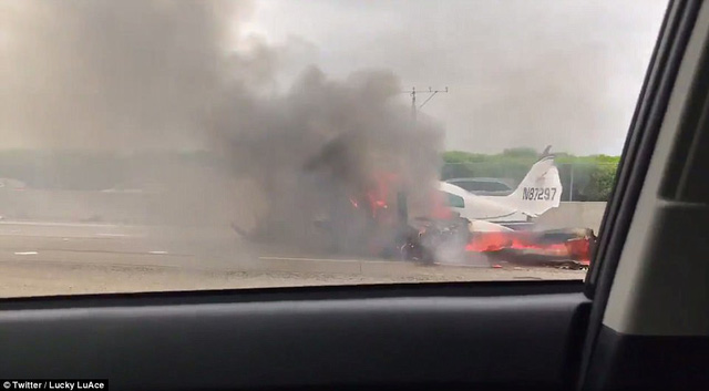 "Chiếc máy bay trượt dài trên đường cao tốc và bốc cháy", ABC News dẫn lời một nhân chứng cho hay.