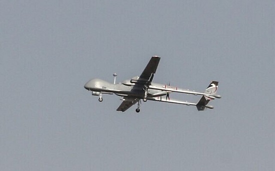Một máy bay không người lái quân sự Heron của Israel bay qua thành phố Ashdod, miền Nam Israel vào ngày 13/11/2019. Ảnh: AFP. |