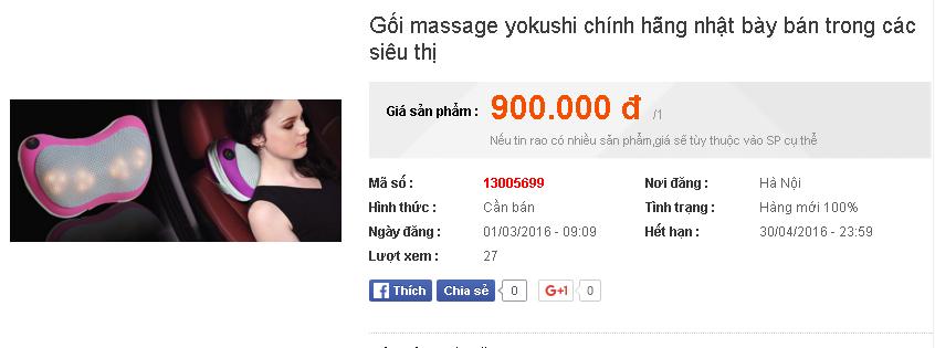 "Tình hình là e có đi Vincom Long Biên mua 1 cái gối Massage yokushi giá 3,5 triệu (tặng kèm gậy mát xa trị giá 1tr8) Made in Japan mà về nhà em nhìn thấy mọi thứ rất tầu khựa. Em lên web thì thấy giá chỉ có 500-600k và có đọc 1 vài page cũng có bác mua phải cùng tầm giá và bảo đó là đồ tàu", một thành viên diễn đàn của tinhte đưa ra thắc mắc.