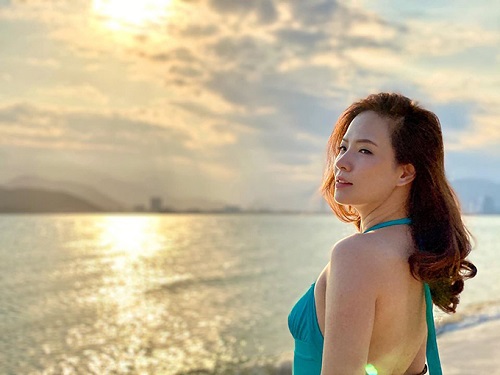 Trải qua hai lần sinh nở nhưng Đan Lê vẫn giữ được vóc dáng cân đối, gợi cảm. Khoảnh khắc người đẹp khoe sắc dưới ánh hoàng hôn được ông xã ghi lại và nhận nhiều lời tán thưởng từ bạn bè, người hâm mộ trên trang cá nhân. |