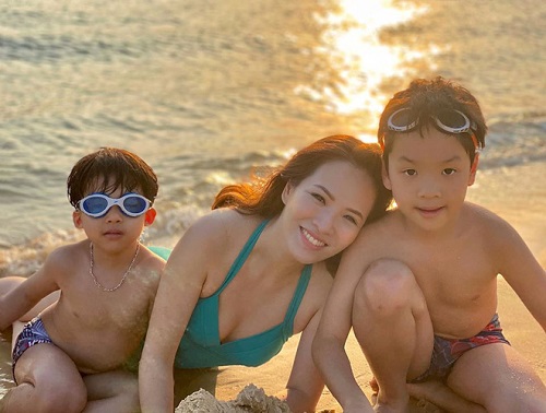 Bộ áo tắm một mảnh tôn lên nước da trắng mịn của bà mẹ hai con. |