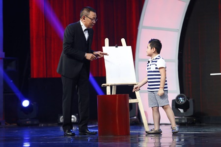 Cậu bé Hoàng Khiêm với khả năng vẽ một lúc bằng hai tay đã "mở lớp" dạy vẽ cho MC Lại Văn Sâm ngay trên sóng truyền hình.