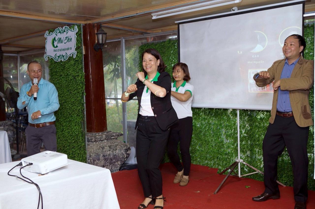 | Chị đang cùng đồng nghiệp tham gia buổi đào tạo của hệ thống Maiskin |