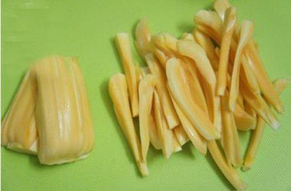 Bước 3: Trong lúc chờ thạch đông thì bóc bỏ hạt mít, thái miếng dài nhỏ.