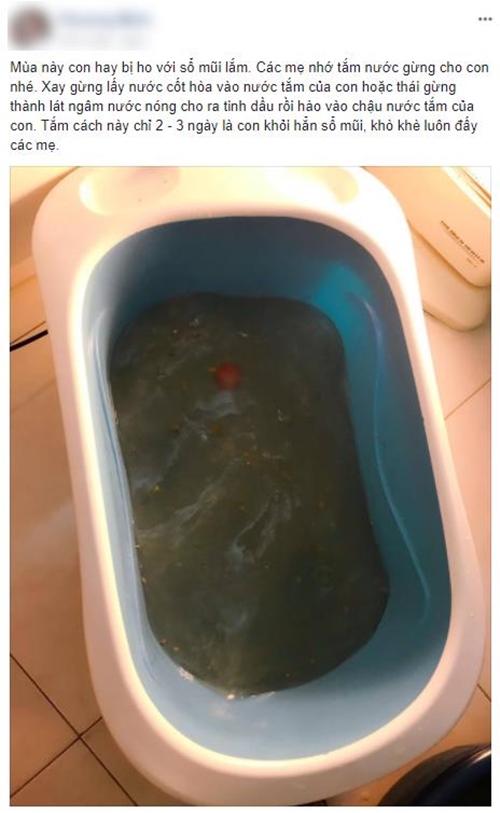 Nickname H.T.H bày tỏ: “Tắm bằng nước gừng đã được áp dụng rất nhiều đời nay rồi. Từ thời các bà, các mẹ. Giờ áp dụng đến đời con của mình vẫn thấy hiệu quả.”