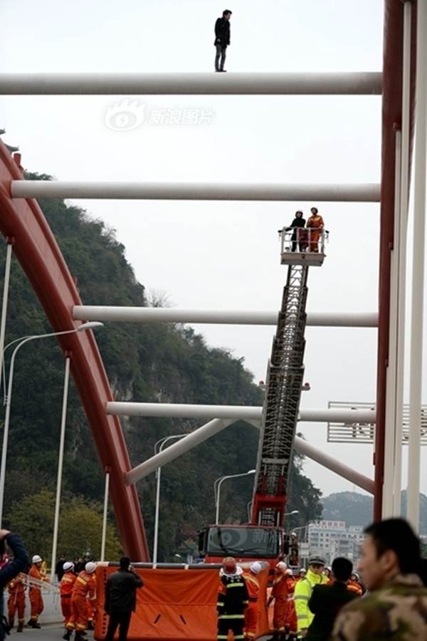 Wei, sinh năm 1992, sống ở Liễu Châu, Quảng Tây, Trung Quốc do gặp rắc rối trong chuyện tình cảm, không giải quyết được đã trèo lên đỉnh một cây cầu của thành phố để tự tử.
