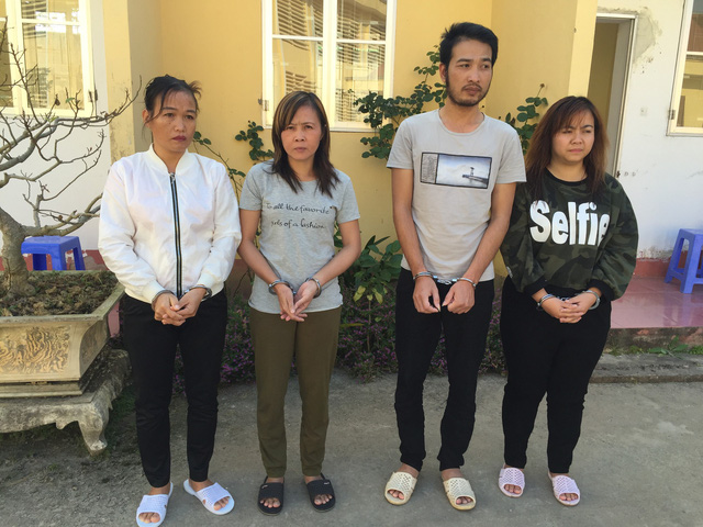 Bốn đối tượng Diễm, Thủy, Tân, Ngân tại cơ quan điều tra. Ảnh: báo Dân trí |