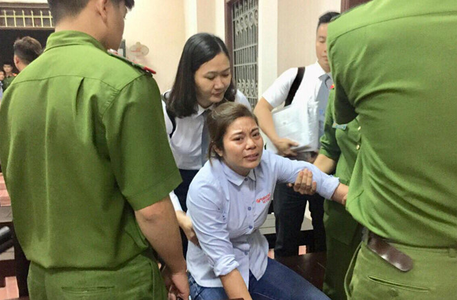 Chị Vũ Thị Thúy thất vọng, đau khổ khi toà phúc thẩm tuyên án. Ảnh: Thanh Niên |