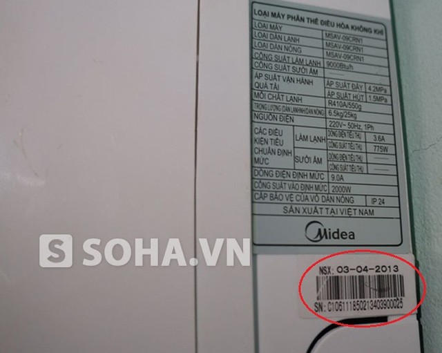 Đặc biệt, tem chiếc điều hòa này ghi ngày sản xuất là ngày 3/4/2013, tức là tính đến hiện tại đã hơn 2 năm.