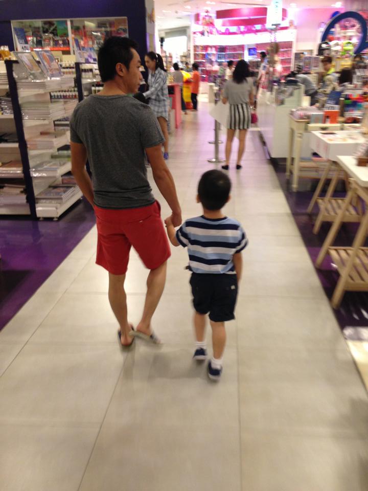 Anh luôn nắm chặt tay con trai dù đi đến bất cứ nơi đâu và là chỗ dựa vững chắc cho cậu con trai bé bỏng của mình.