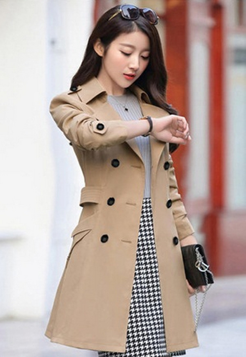 - Áo khoác có dây đai, dây buộc ở eo gọn gàng là trang phục không thể thiếu nếu muốn chọn áo khoác cho người thấp. Không chỉ mang tới vẻ ngoài năng động cho chủ nhân, nó còn giúp ăn gian thêm chiều cao và hướng sự chú ý của người đối diện vào phần eo, tạm quên đi vóc dáng nhỏ bé của bạn. Bên cạnh đó, bạn đọc là những người có thân hình gầy và mảnh muốn chọn cho mình chiếc áo dài có thể tìm hiểu thêm cách chọn áo dài cho người gầy đúng cách nhất của chúng tôi tổng hợp trước đó nhé.