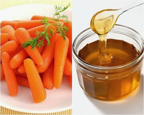 Bạn cần chuẩn bị 1 củ cà rốt, 2-3 thìa mật ong. Cà rốt rửa sạch, ép lấy nước. Sau đó cho khoảng 2-3 thìa mật ong (đã chuẩn bị) khuấy đều.