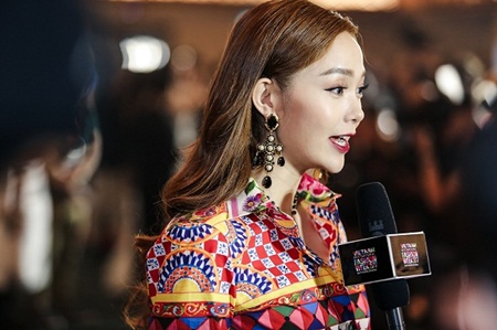 Cô trở thành tâm điểm thảm đỏ với nhan sắc rạng rỡ cùng "cây" đồ hiệu với ví và hoa tai của Dolce & Gabbana, vòng tay Cartier, đồng hồ Formuler. |