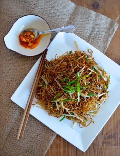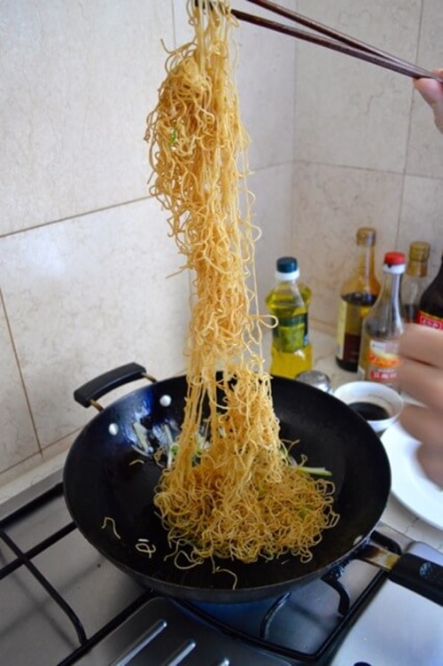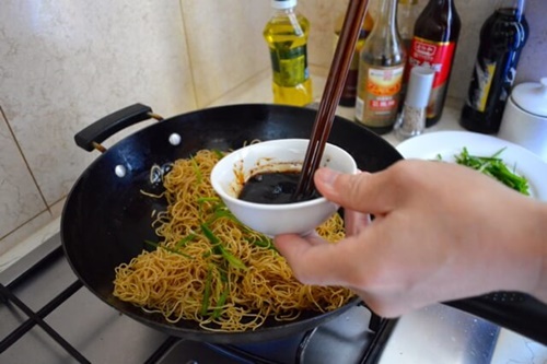 Chú ý: Giống như hầu hết các món xào của Trung Quốc, mì xào yêu cầu lửa thật lớn để đảm bảo sợi mì bên ngoài hơi giòn nhưng bên trong vẫn mềm. Dùng chảo sâu lòng đặc trưng để xào món này sẽ dễ dàng thao tác hơn.